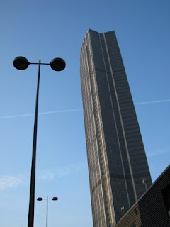 Ce qui m’impressionne toujours à Montparnasse, c’est la gare et sa façade… le grand rideau de verre soutenu par une poutre colossale [40 mètres de portée, non?] et ses 2 énormes appuis… j’peux passer des heures à contempler ça ^^