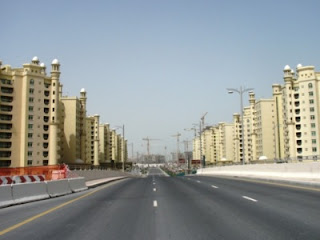 On embarque sur l’île par une autoroute de deux fois trois voies qui jusqu’à aujourd’hui n’est utilisée (à part les ouvriers qui travaillent sur les chantiers) que par les curieux qui voudraient prendre quelques photos. Juste une partie des immeubles de luxe bordant l’autoroute sont finis, le reste de l’île restant un chantier énorme qui finira d’ici à la fin de l’année.
