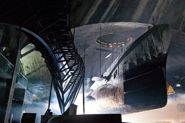 A l’intérieur, la passerelle en acier qui traverse tout l’espace et relie les différentes parties de l’exposition a reçu une attention particulière. L’intérieur des hangars a été divisé en trois «mondes», le monde sous-marin, le monde aérien ainsi que celui qui se place entre ces derniers. Ces univers ont permis de présenter chaque fraction de la collection du Musée maritime dans son environnement caractéristique.