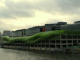 Il s’agit de la passerelle de la cité de la mode et du design qui amène une note de fraîcheur, de nouveauté à un immeuble datant du début du siècle.